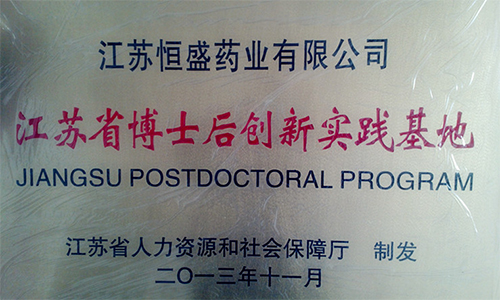 經(jīng)江蘇省人力資源和社會保障廳批準, 江蘇恒盛藥業(yè)成為張家港保稅區(qū)第一批省級博士后創(chuàng)新實踐基地, 基地將依托公司省級工程技術(shù)中心和恒盛上海研究開發(fā)中心進行技術(shù)創(chuàng)新實踐,, 開展藥物設(shè)計、藥物結(jié)晶學(xué)等研究工作, 借助優(yōu)秀的博士人才,加快企業(yè)轉(zhuǎn)型升級和提升技術(shù)研發(fā)能力。