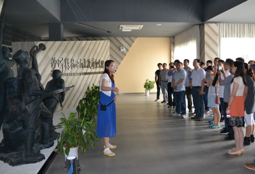 下午1:30分,天空下著大雨,但是大家還是按照計劃前往參觀學(xué)習(xí)的第一站:位于錦豐鎮(zhèn)的沙洲縣抗日民主政府紀(jì)念館。紀(jì)念館以沙洲地區(qū)抗日斗爭為背景,分中華怒吼、國恥家恨、“江抗”東進(jìn)、眾志成城、浴血奮戰(zhàn)、百折不撓、沙洲光復(fù)、名錄八個部分,以文字、圖表、照片、塑像、實物等形式,全面具體地展現(xiàn)了中國共產(chǎn)黨領(lǐng)導(dǎo)下的沙洲兒女,在抗日戰(zhàn)爭時期為保衛(wèi)家園和祖國領(lǐng)土完整,建立抗日民主政府,軍民攜手頑強抵御日本侵略者的英勇事跡。參觀中,面對一段段承載著革命歷史記憶的圖片和實物,在解說員的講解下,大家或凝神品讀,或低語交流,紛紛表示:緬懷革命先烈,特別是故土先輩們可歌可泣的偉大壯舉,對于我們進(jìn)一步了解張家港的歷史知識,提振工作干勁無疑是一大促進(jìn)。